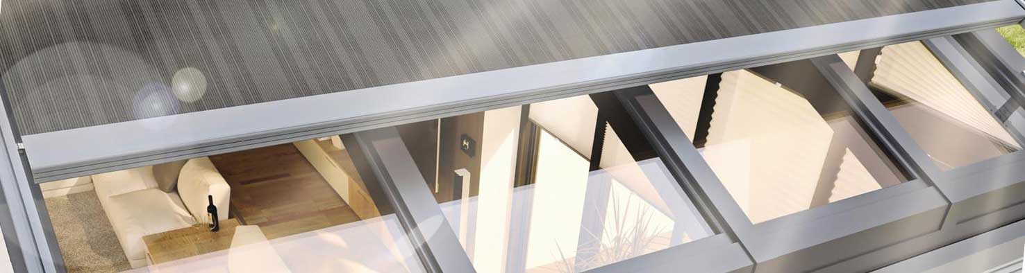 Ta kontroll över ljusflödet i ert glastak med Solflex markis-modeller, som är speciellt avsedda att skugga stora glastak, för undersidan eller på utsida glaspartiet.